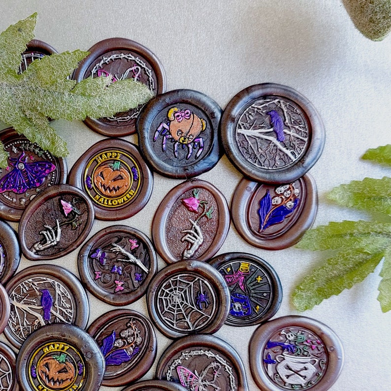 6 Halloween wax seal stickers, pumpkin wax seal set, Premade wax seals, Wax seal stickers self-adhesive