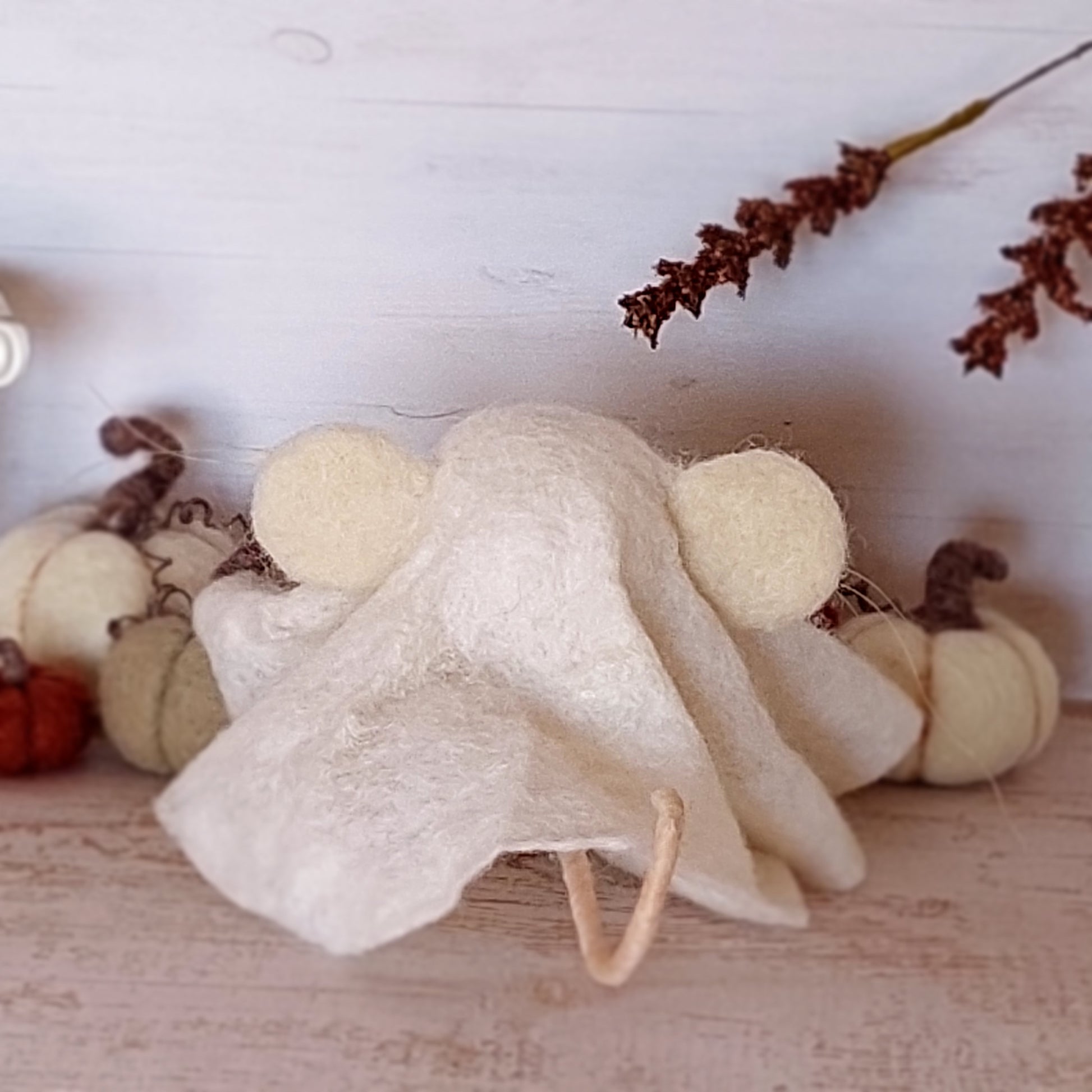 Tobben Tattertail is a soulful little mouse who loves to dress up as a ghost for Halloween.