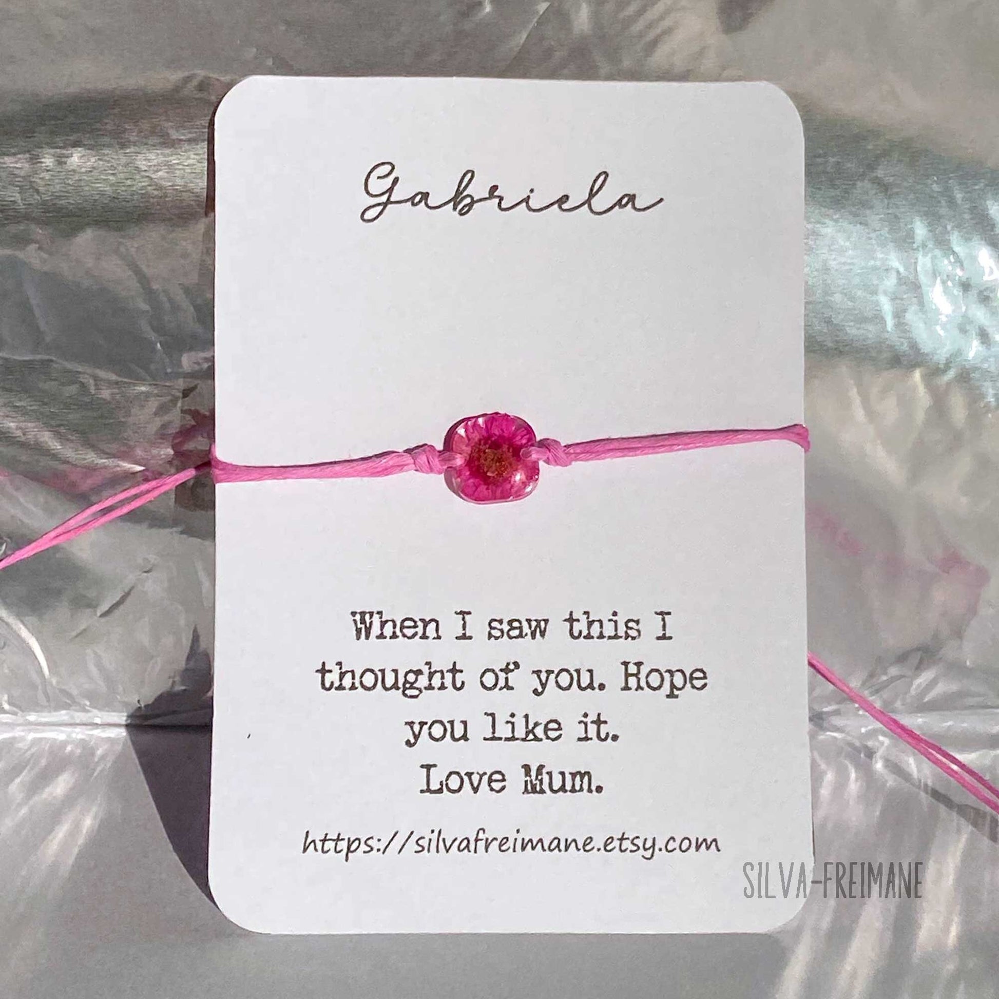 Small Dark Pink Flower String bracelet, Friendship bracelet, pressed flower bracelet