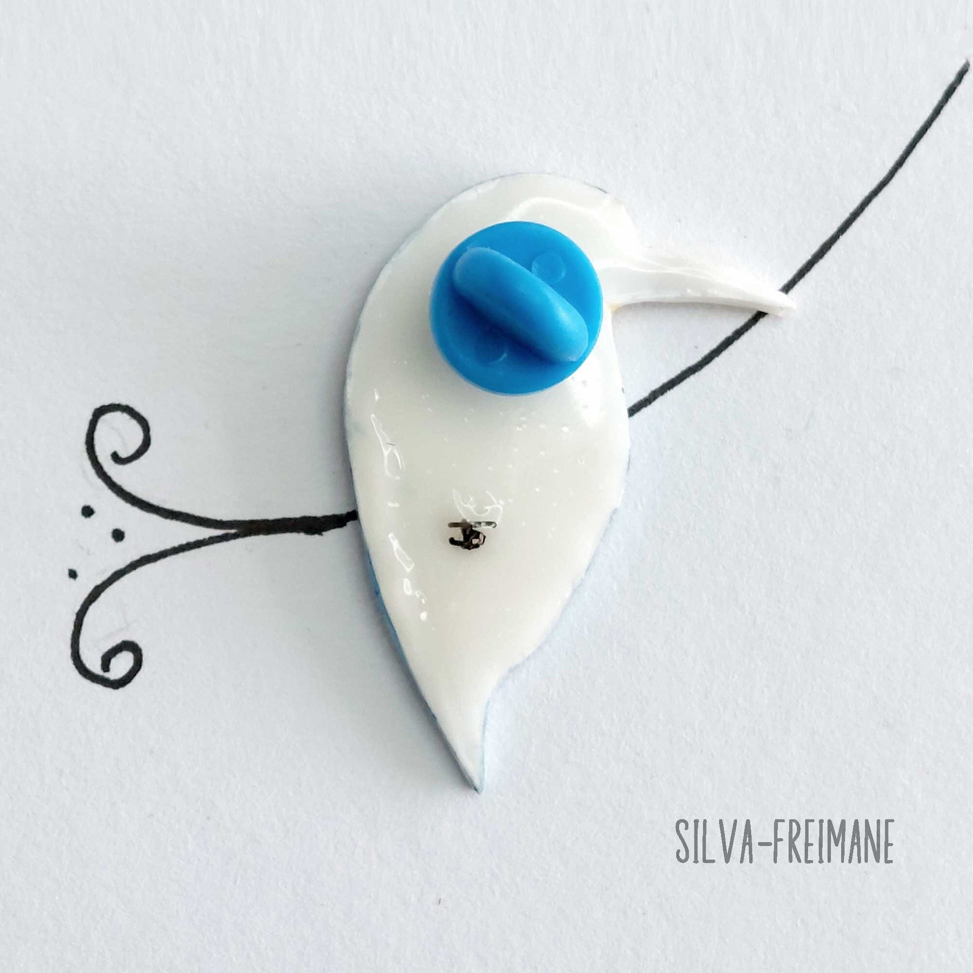 Next to the back of the bird I added 1 metal pins and secure in place with a layer of resin. Rubber cap is then added to complete the pin.